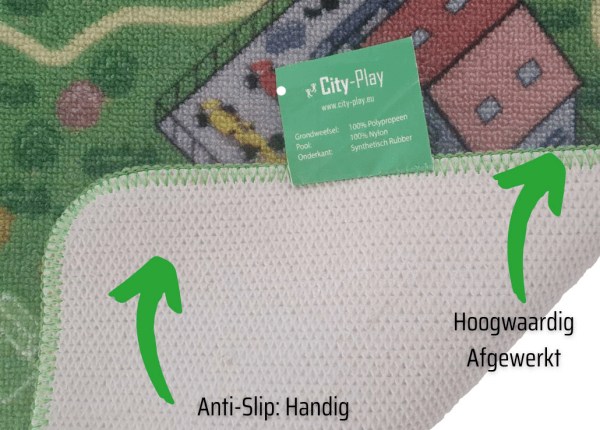 Met minimaal 20 iconen per stad en het gebruik van meer dan 50 kleuren haal je een uniek item in huis. Ieder kleed, ook wel speeltapijt of verkeerskleed genoemd, heeft het ruime formaat van 115 cm x 175 cm, is uitstekend afgewerkt met anti-slip aan de onderzijde en is recyclebaar. Speelkleden stimuleren ook tal van vaardigheden van je baby, peuter of kleuter maar het is natuurlijk vooral heel erg leuk. De speelkleden zijn gemaakt van anti allergenen en milieuvriendelijke stoffen.